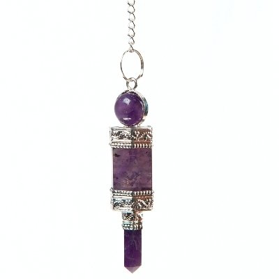 Ⓓ Pendule Baguette en Améthyste avec Sphère sur le Dessus et Etui en velours